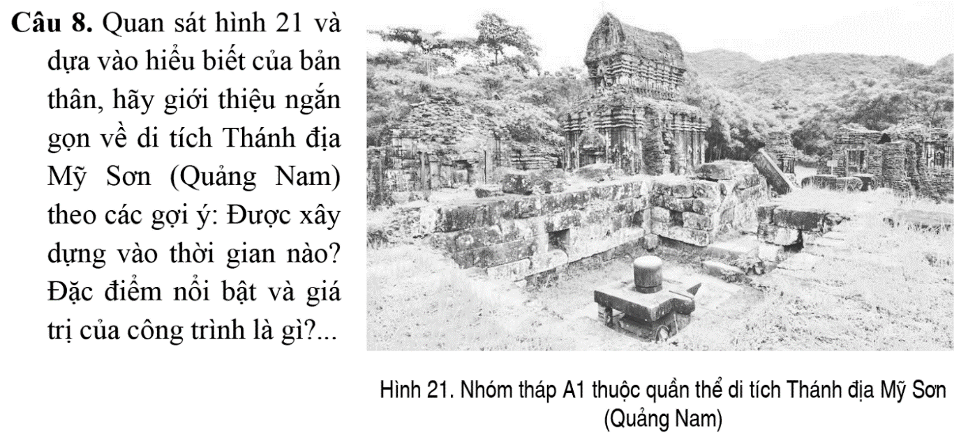 – Thánh địa Mỹ Sơn (Quảng Nam) được xây dựng vào khoảng thế kỉ X, là một quần thể gồm nhiều di tích.