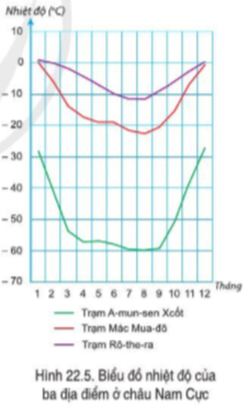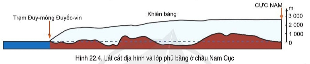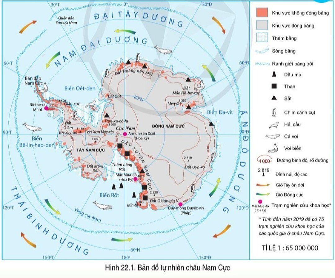 Đọc thông tin mục “Đặc điểm thiên nhiên châu Nam Cực” và dựa vào hình 22.1, hình 22.4, hình 22.5.