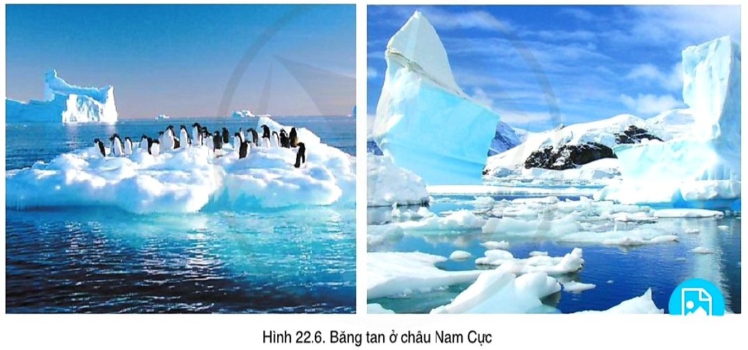Đọc thông tin và quan sát hình 22.6, hãy mô tả kịch bản về sự thay đổi thiên nhiên châu Nam Cực khi có biến đổi khí hậu toàn cầu.