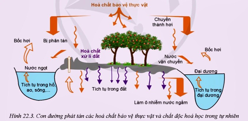 Quan sát Hình 22.3 và cho biết: Vì sao lạm dụng thuốc bảo vệ thực vật, hóa chất xử lí đất lại gây ô nhiễm môi trường trong trồng trọt và ảnh hưởng tới sức khỏe con người?