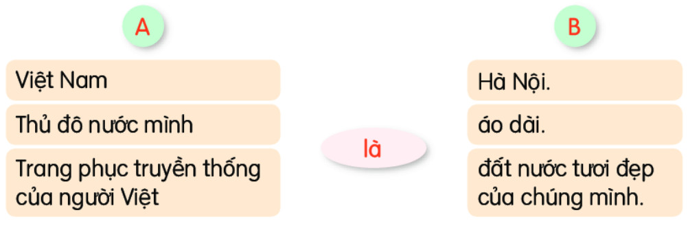 Dùng từ là kết hợp từ ngữ ở cột A với từ ngữ ở cột B để tạo câu giới thiệu.
