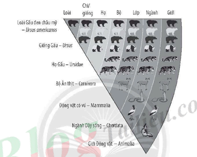 Loài -> Chi (giống) -> Lớp -> Ngành -> Giới.