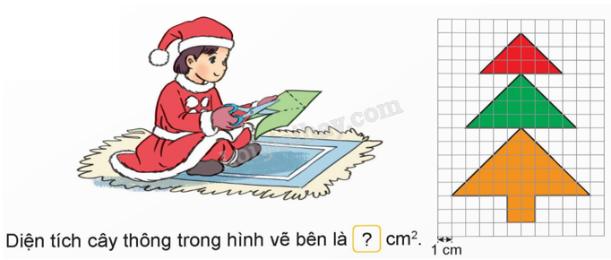 Diện tích cây thông là: 9 + 16 + 25 + 4 = 54 cm2