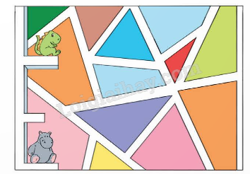 Hình tam giác màu xanh lá; hình tam giác màu tím có dạng hình tam giác vuông