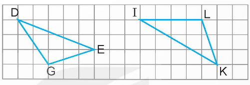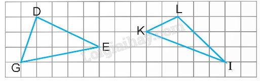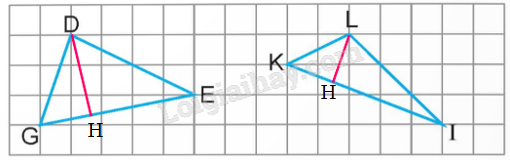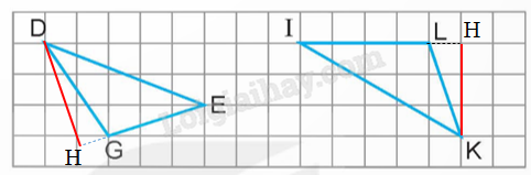 a) Vẽ hình tam giác DEG, IKL trên giấy kẻ ô vuông như hình bên rồi vẽ đường cao ứng với đáy GE, KI của các hình tam giác đó.