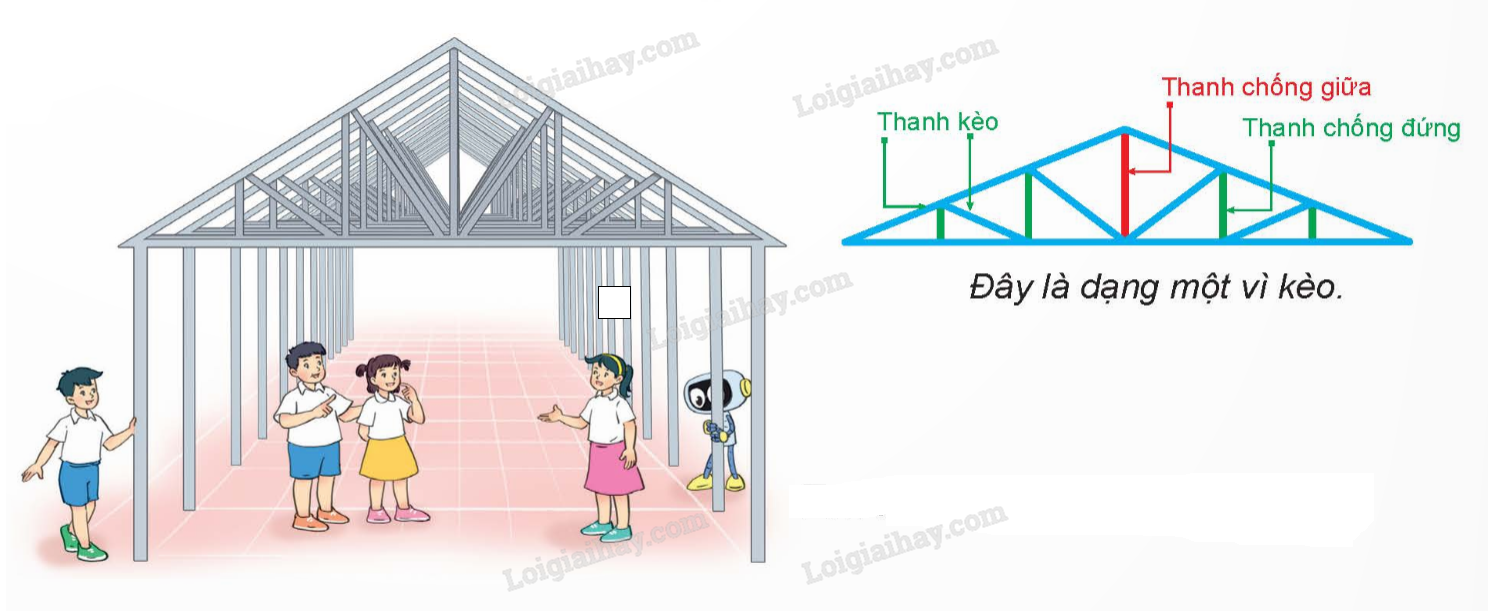 Trong bức tranh bên, em hãy tìm các hình tam giác và cho biết mỗi hình tam giác đó có dạng hình tam giác gì.