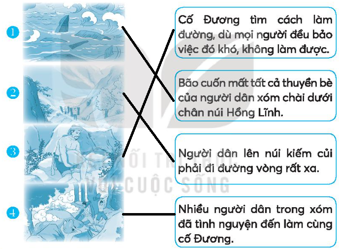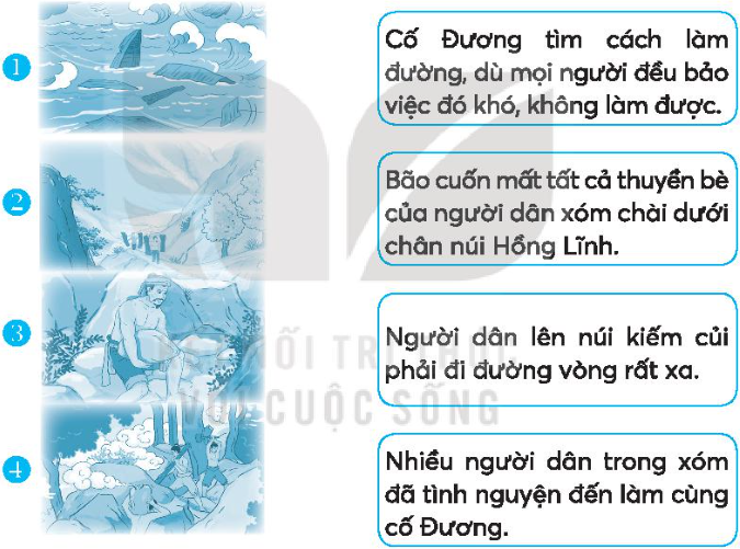 Quan sát 4 bức tranh minh hoạ câu chuyện Những bậc đá chạm mây, xác định nội dung từng tranh.