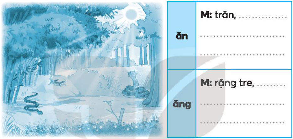 b. Quan sát tranh, tìm từ ngữ có tiếng chứa ăn hoặc ăng