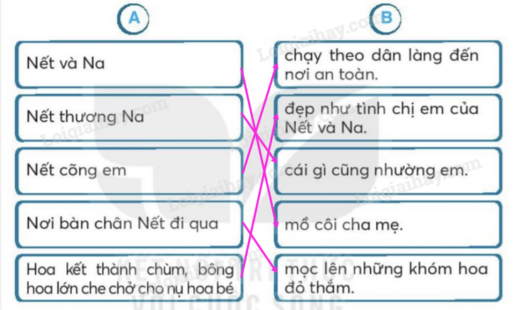 Dựa vào bài đọc, nối từ ngữ ở cột A với từ ngữ ở cột B.