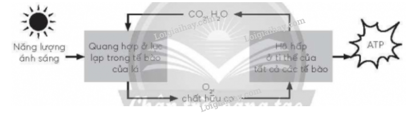 Sơ đồ thể hiện mối quan hệ giữa quang hợp và hô hấp ở cây: