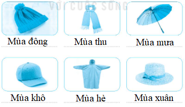 9. Chọn các cụm từ: Mùa xuân, Mùa hè, Mùa thu, Mùa đông hay Mùa mưa, Mùa khô và viết vào chỗ (…) dưới mỗi hình cho phù hợp.
