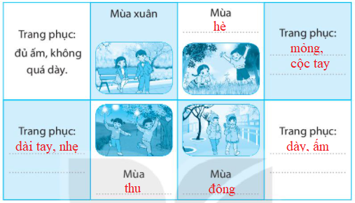 Quan sát các hình để điền mùa cho phù hợp.