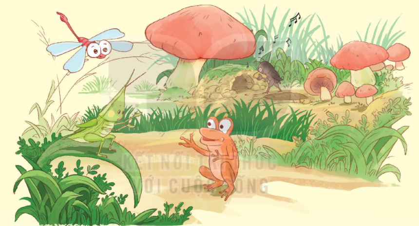Thế là cào cào, nhái bén, chuồn chuồn rủ nhau đi tìm tiếng hát.