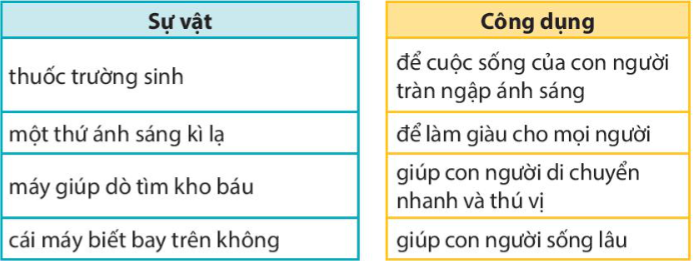 2. Tìm công dụng của mỗi sự vật do các em bé ở Vương quốc Tương Lai sáng chế.