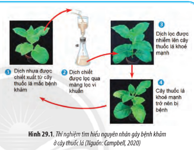 Vào cuối năm 1800, Martinus Beijerinck (Hà Lan) đã tiến hành thí nghiệm tìm hiểu nguyên nhân gây bệnh khảm ở cây thuốc lá (Hình 29.1).