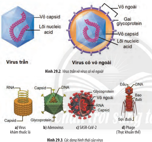 Quan sát hình 29.2, 29.3 và nêu cấu tạo của virus. Quan sát các đặc điểm khác nhau của các loại virus và đưa ra các tiêu chí phân loại virus.