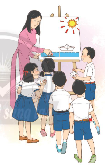 Cô giáo đã tạo ra chiếc thuyền, mặt trời, sóng nước.