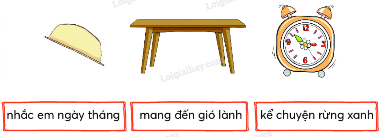 Câu 1: Chọn từ ngữ phù hợp với từng đồ vật dưới đây: