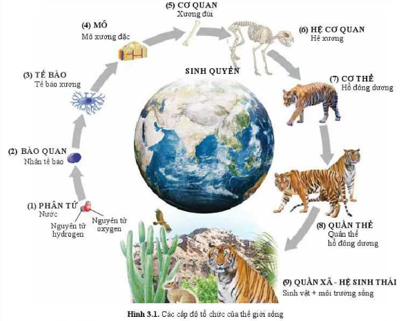 Quan sát hình 3.1 và dựa vào kiến thức đã học hãy mô tả các cấp độ tổ chức sống.