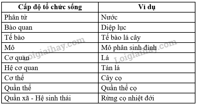 Cấp độ tổ chức sống là gì? Nêu ví dụ cho mỗi cấp độ tổ chức sống.