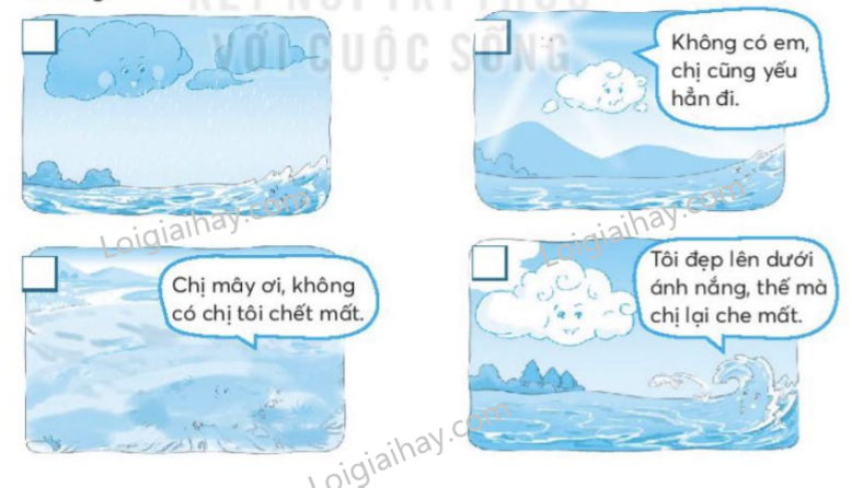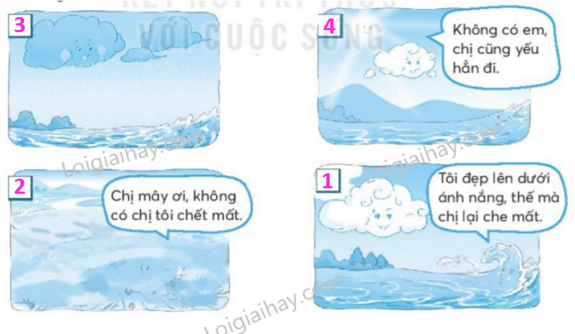 a. Em nhớ lại câu chuyện Hồ nước và mây, quan sát kĩ các bức tranh để sắp xếp theo trình tự.