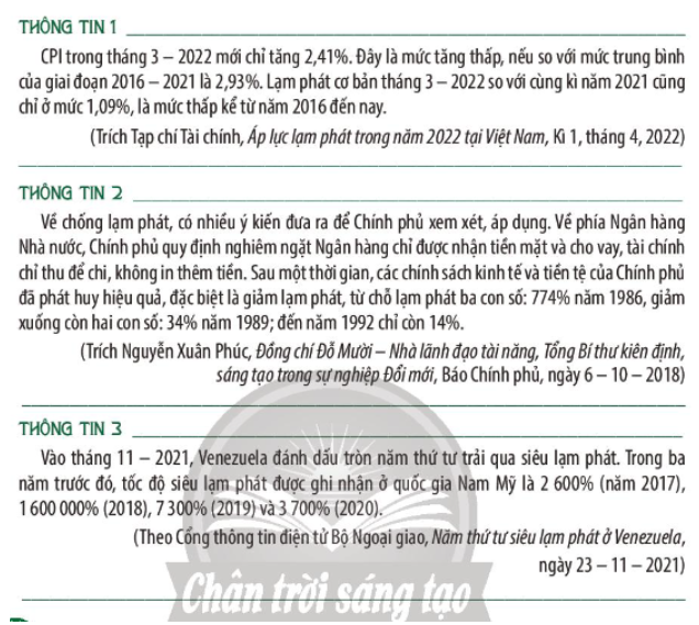 Đọc các thông tin và nêu được các loại hình lạm phát được đề cập trong các thông tin đó.