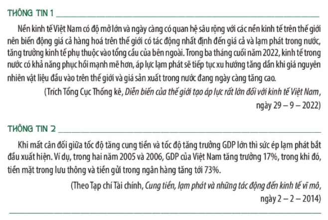 Đọc các thông tin và giải thích nguyên nhân dẫn đến lạm phát.