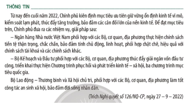 – Tìm hiểu các chủ trương, chính sách của Nhà nước trong việc kiểm soát và kiềm chế lạm phát.