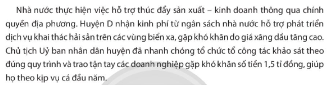 Em đánh giá như thế nào về chính sách hỗ trợ sản xuất – kinh doanh để kiểm soát, kiềm chế lạm phát của Nhà nước và có nhận xét gì về việc làm của Chủ tịch Uỷ ban nhân dân huyện D trong trường hợp sau: