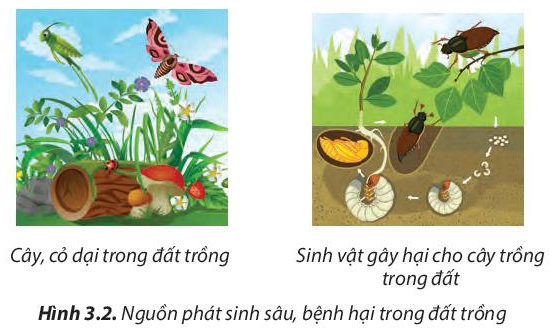 Quan sát vào hình 3.2 ta thấy nguồn gây hại cho cây đến từ cây cỏ dại trong đất trồng và sinh vật khác.