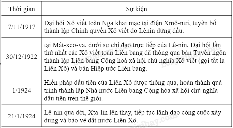 Lập bảng tóm tắt quá trình hình thành Liên bang Cộng hoà xã hội chủ nghĩa Xô viết.