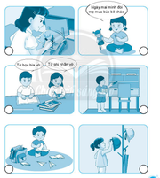 – Khi đi học về, em thường cất gọn cắp sách và quần áo, không vứt đồ đạc linh tinh.