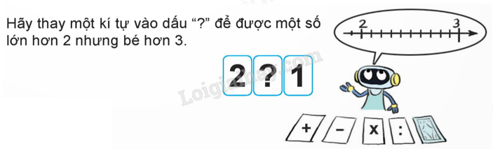 Điền dấu thích hợp để được một số lớn hơn 2 nhưng bé hơn 3.