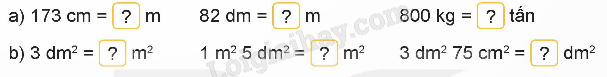 – Viết số đó dưới dạng số thập phân theo đơn vị mét; xác định phần nguyên, phần thập phân của mỗi số đo.