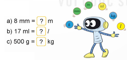 – Dựa vào mối quan hệ giữa các đơn vị trong bảng đơn vị đo độ dài (hoặc bảng đơn vị đo khối lượng): Đơn vị bé bằng $\frac{1}{{10}}$ đơn vị lớn hơn tiếp liền.