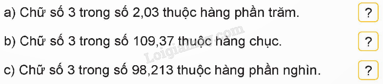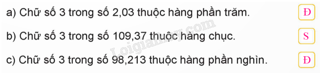 Các chữ số thuộc phần thập phân theo thứ tự từ trái sang phải thuộc các hàng phần mười, hàng phần trăm, hàng phần nghìn, ….