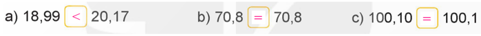 – Nếu phần nguyên của hai số đó bằng nhau, thì ta so sánh phần thập phân, lần lượt từ hàng phần mười, hàng phần trăm, hàng phần nghìn … đến cùng một hàng nào đó, số thập phân nào có chữ số ở hàng tương ứng lớn hơn thì số đó lớn hơn.