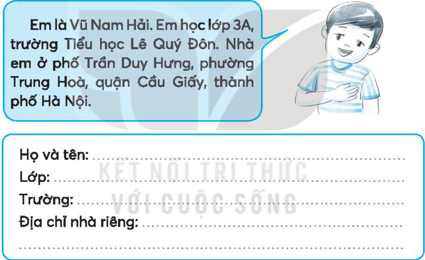 Dựa vào lời giới thiệu của Nam Hải, điền thông tin về bạn ấy vào chỗ trống.