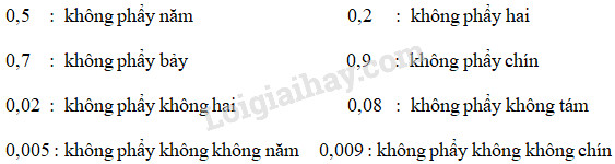 0,1 đọc là: không phẩy một     ;              0,01 đọc là: không phẩy không một.