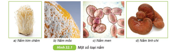 Quan sát Hình 32.1 SGK KHTN 6, nhận xét về hình dạng của các loại nấm. Hãy kể tên một số loại nấm mà em biết.