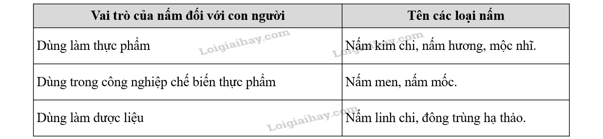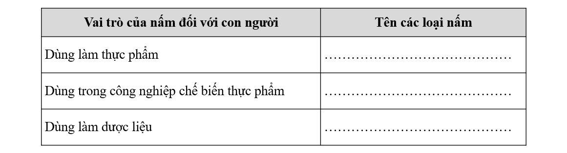 Nêu tên các loại nấm em biết và tác dụng của chúng rồi hoàn thành bảng sau: