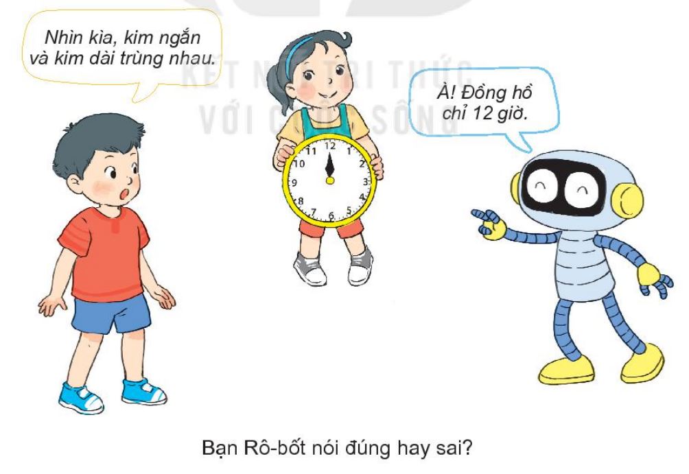 Dựa vào cách xem giờ đúng trên đồng hồ để xác định bạn Rô-bốt nói đúng hay sai.