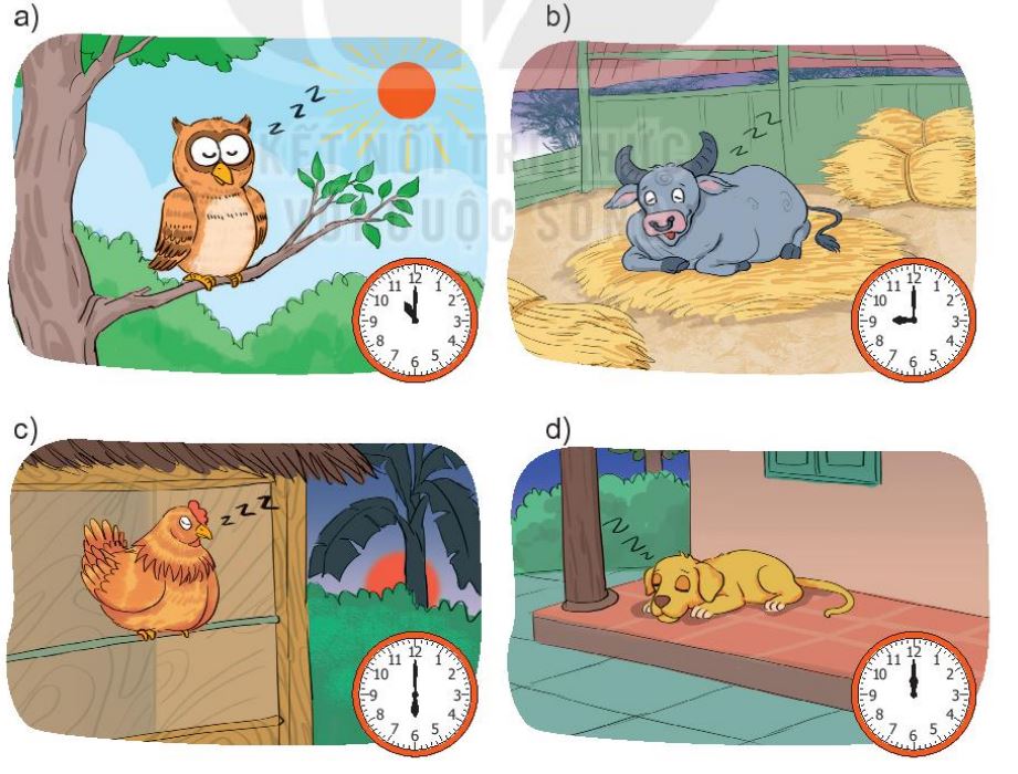 a) Con cú ngủ lúc 11 giờ trưa.