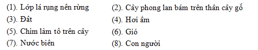 Các yếu tố vô sinh là: (1), (3), (4), (6)