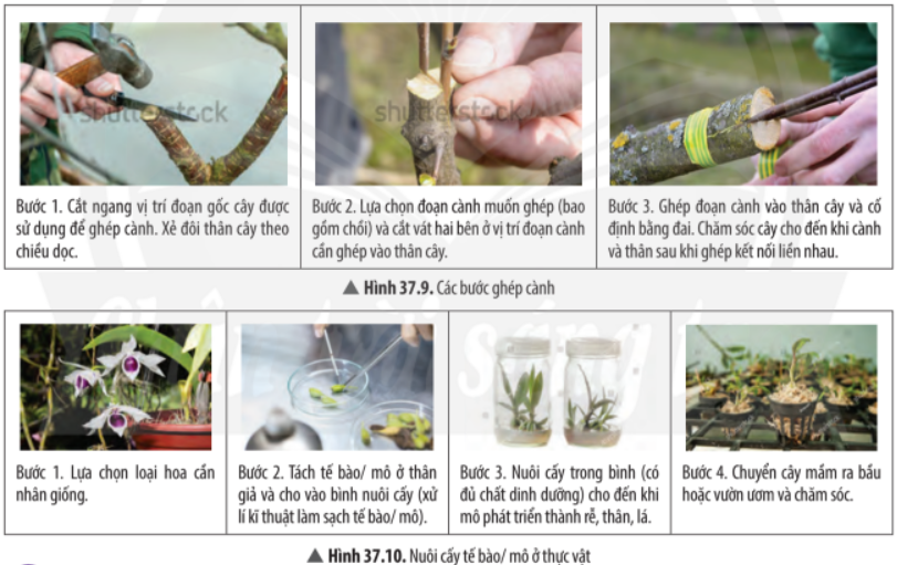 11. Quan sát từ Hình 37.7 đến 37.10, đọc đoạn thông tin và nêu một số ứng dụng sinh sản vô tính trong thực tiễn.