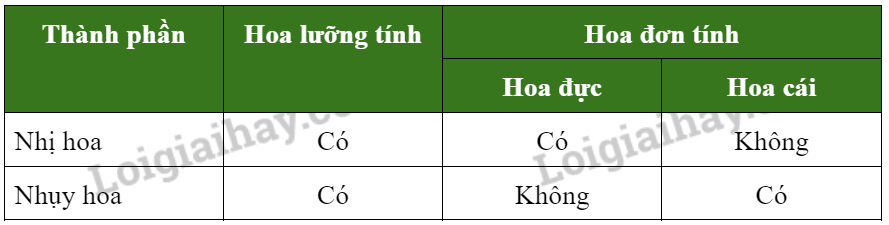17. Quan sát Hình 37.13 và 37.14, phân biệt hoa lưỡng tính với hóa đơn tính bằng cách hoàn thành bảng sau: