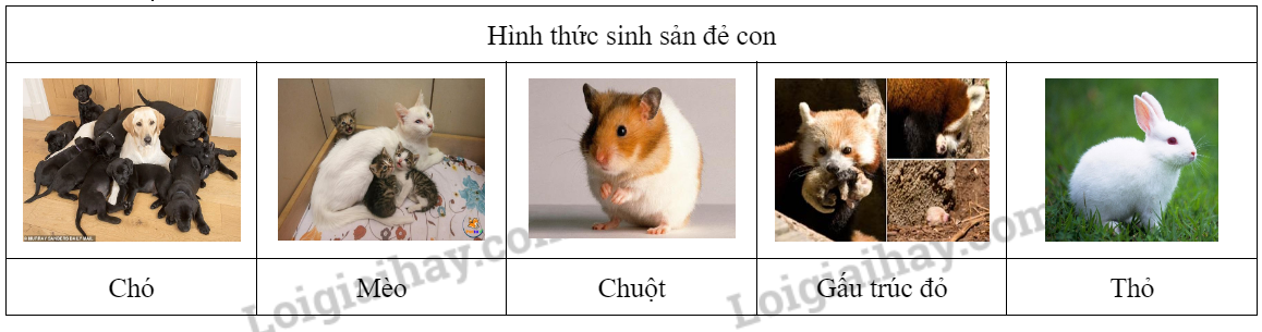 • Hãy kể tên vật nuôi có hình thức sinh sản hữu tính là đẻ con hoặc đẻ trứng