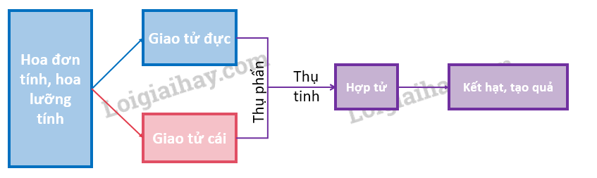 A.  Hình thành giao tử đực và giao tử cái – Thụ phấn – Thụ tinh – Kết hạt, tạo quả.