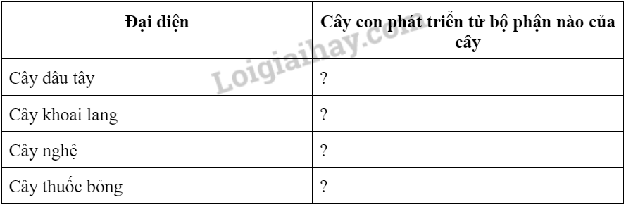 4. Nêu sự khác biệt giữa sinh sản vô tính và sinh sản hữu tính ở thực vật bằng cách hoàn thành bảng sau: