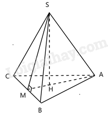 Ta có: \(SA = SB = SC \Rightarrow \Delta SAB\) đều\( \Rightarrow \) SM vừa là trung tuyến vừa là đường cao.\( \Rightarrow SM \bot BC \Rightarrow \widehat {SMB} = {90^0} \Rightarrow \Delta SMB\) vuông tại M
